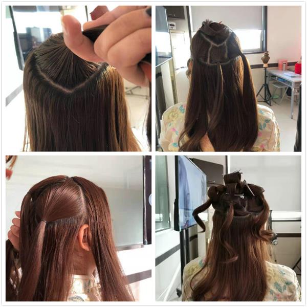 1.首先我們把頭發(fā)進(jìn)行分區(qū),用小皮筋的方式把模特的長(zhǎng)發(fā)多分幾個(gè)小塊進(jìn)行固定,為了讓頭發(fā)不凌亂。