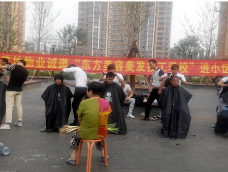 2014年9月中旬,受秀蘭城市美地物業(yè)邀請,我校美發(fā)高級班師生到秀蘭城市美地社區(qū)為老人義務理發(fā)。 2014年9月下旬,受保定市青年志愿者協(xié)會邀請,我校剪發(fā)班師生到二中社..