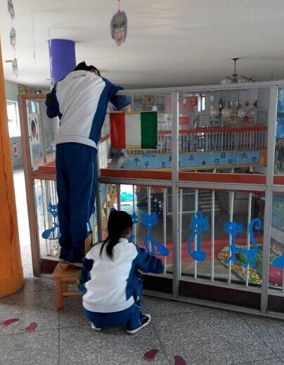2014年10月23日下午,石家莊工程技術學校校團委綠袖子志愿者協會利用課余時間到聯盟社區(qū)和石家莊市新華區(qū)大地幼兒園進行義務勞動。 勞動過程中,同學們各司其職,刮小廣..