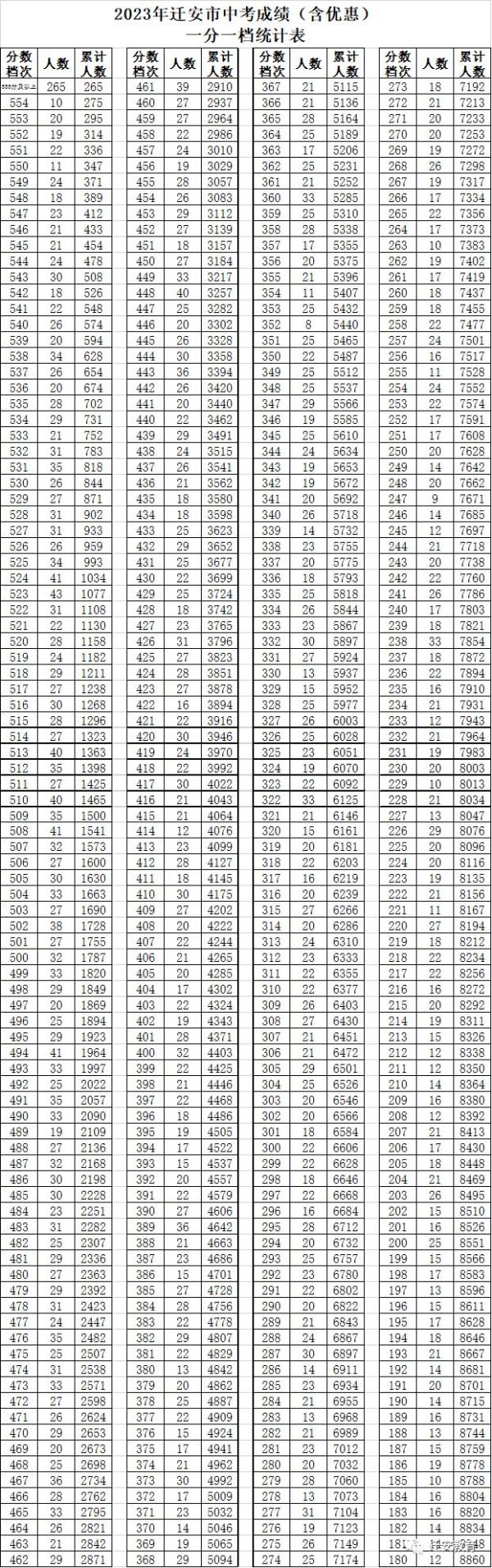 2023年中考一分一檔表出爐! 點擊下方圖片放大查看