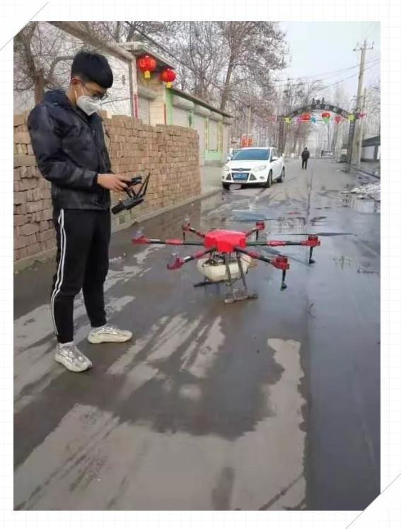 17級(jí)無(wú)人機(jī)應(yīng)用技術(shù)1班的黃杰、于博濤、柳殿成三位同學(xué)是河北唐山人,他們牢記“弘德、修身、強(qiáng)技、致用”的校訓(xùn),希望為抗擊疫情貢獻(xiàn)力量。隨著疫情蔓延,河北省唐山市為保護(hù)好每一位公民,實(shí)行了區(qū)域消毒的方法,幾位同學(xué)自愿參加了城市消毒工作,利用所學(xué)的專業(yè)進(jìn)行無(wú)人機(jī)高空消毒除菌作業(yè),為家鄉(xiāng)提供了防疫服務(wù)。