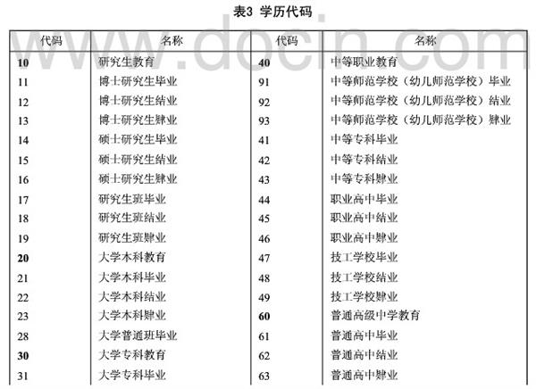 學(xué)歷代碼