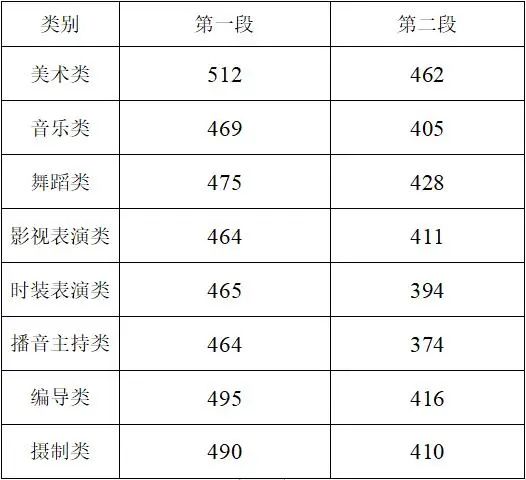 藝術(shù)類第二批專業(yè)省統(tǒng)考各類別綜合分分段線