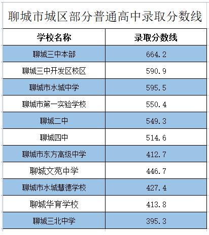 聊城市城區(qū)部分普通高中錄取分?jǐn)?shù)線